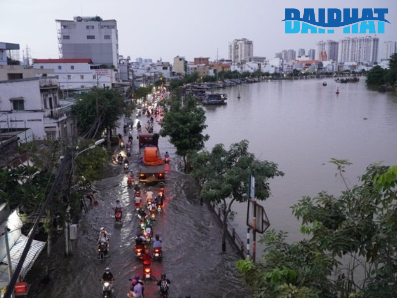 TP.HCM là một trong những đô thị thường xuyên xảy ra tình trạng ngập nước, đặc biệt trong mùa mưa hoặc khi triều cường dâng cao. Nhiều khu vực có địa hình thấp khiến nước dễ tràn vào nhà, gây ảnh hưởng đến sinh hoạt của người dân.